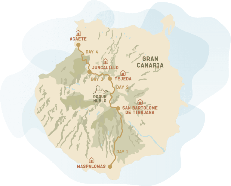 The Canary Trail is an unforgettable 4-day trek across Gran Canaria, from one coast to the other. You start in the iconic dunes of Maspalomas in the south and end a few days later in the charming harbor town of Agaete in the north.